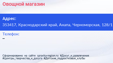 Овощной магазин по адресу 353417, Краснодарский край, Анапа, Черноморская, 128/1 в дальнейшем Организация, размещена в следующих категориях: