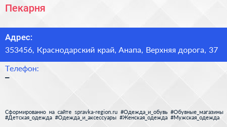 Пекарня по адресу 353456, Краснодарский край, Анапа, Верхняя дорога, 37 в дальнейшем Организация, размещена в следующих категориях:
