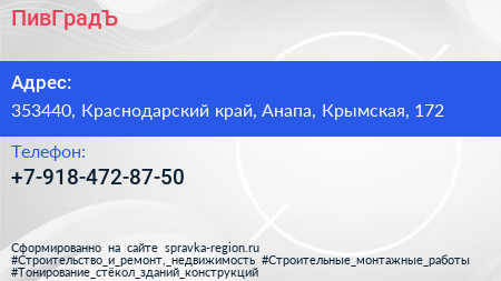 ПивГрадЪ по адресу 353440, Краснодарский край, Анапа, Крымская, 172 в дальнейшем Организация, размещена в следующих категориях:
