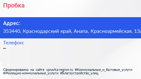 Пробка по адресу 353440, Краснодарский край, Анапа, Красноармейская, 13а в дальнейшем Организация, размещена в следующих категориях: