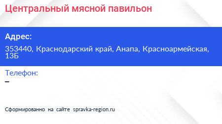 Центральный, мясной павильон по адресу 353440, Краснодарский край, Анапа, Красноармейская, 13Б в дальнейшем Организация, размещена в следующих категориях: