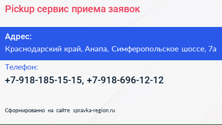 Pickup, сервис приема заявок по адресу Краснодарский край, Анапа, Симферопольское шоссе, 7а в дальнейшем Организация, размещена в следующих категориях: