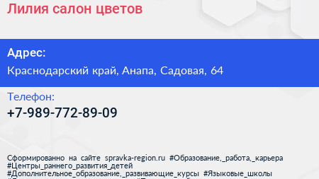 Лилия, салон цветов по адресу Краснодарский край, Анапа, Садовая, 64 в дальнейшем Организация, размещена в следующих категориях:
