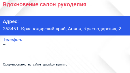 Вдохновение, салон рукоделия по адресу 353451, Краснодарский край, Анапа, Краснодарская, 2 в дальнейшем Организация, размещена в следующих категориях: