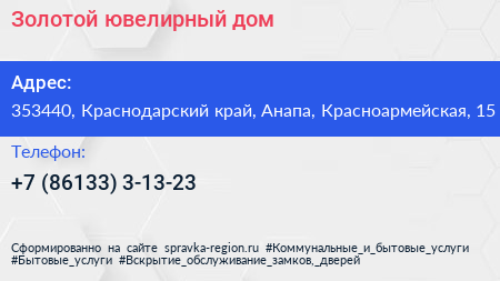 Золотой, ювелирный дом по адресу 353440, Краснодарский край, Анапа, Красноармейская, 15 в дальнейшем Организация, размещена в следующих категориях: