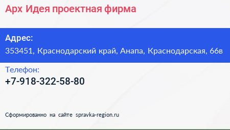 Арх-Идея, проектная фирма по адресу 353451, Краснодарский край, Анапа, Краснодарская, 66в в дальнейшем Организация, размещена в следующих категориях: