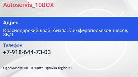 Autoservis_10BOX по адресу Краснодарский край, Анапа, Симферопольское шоссе, 3Б/1 в дальнейшем Организация, размещена в следующих категориях: