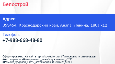 Белострой по адресу 353454, Краснодарский край, Анапа, Ленина, 180а к12 в дальнейшем Организация, размещена в следующих категориях: