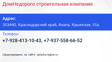 ДомНедорого, строительная компания по адресу 353440, Краснодарский край, Анапа, Крымская, 51а в дальнейшем Организация, размещена в следующих категориях: