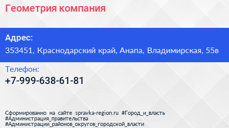 Геометрия, компания по адресу 353451, Краснодарский край, Анапа, Владимирская, 55в в дальнейшем Организация, размещена в следующих категориях: