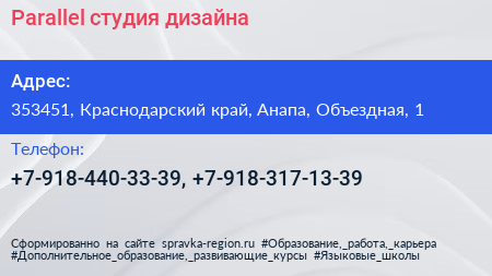 Parallel, студия дизайна по адресу 353451, Краснодарский край, Анапа, Объездная, 1 в дальнейшем Организация, размещена в следующих категориях: