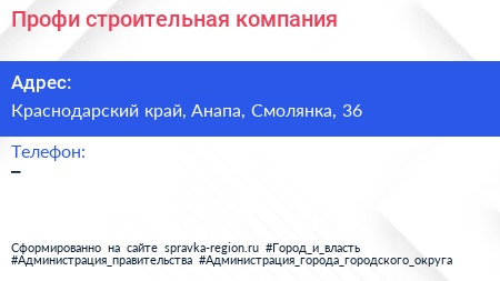 Профи, строительная компания по адресу Краснодарский край, Анапа, Смолянка, 36 в дальнейшем Организация, размещена в следующих категориях: