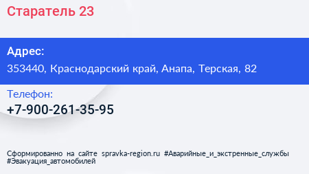 Старатель 23 по адресу 353440, Краснодарский край, Анапа, Терская, 82 в дальнейшем Организация, размещена в следующих категориях: