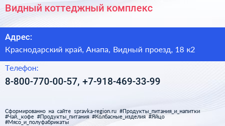 Видный, коттеджный комплекс по адресу Краснодарский край, Анапа, Видный проезд, 18 к2 в дальнейшем Организация, размещена в следующих категориях: