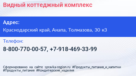 Видный, коттеджный комплекс по адресу Краснодарский край, Анапа, Толмазова, 30 к3 в дальнейшем Организация, размещена в следующих категориях: