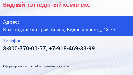 Видный, коттеджный комплекс по адресу Краснодарский край, Анапа, Видный проезд, 18 к5 в дальнейшем Организация, размещена в следующих категориях: