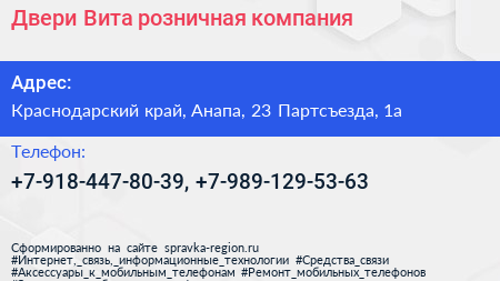Двери Вита, розничная компания по адресу Краснодарский край, Анапа, 23 Партсъезда, 1а в дальнейшем Организация, размещена в следующих категориях: