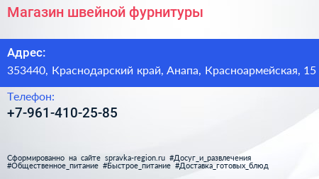 Магазин швейной фурнитуры по адресу 353440, Краснодарский край, Анапа, Красноармейская, 15 в дальнейшем Организация, размещена в следующих категориях: