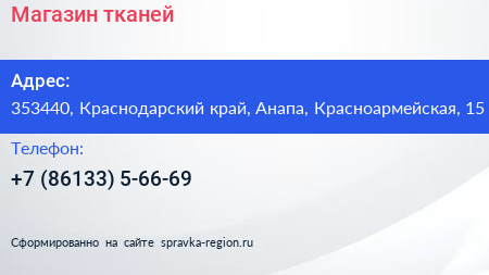 Магазин тканей по адресу 353440, Краснодарский край, Анапа, Красноармейская, 15 в дальнейшем Организация, размещена в следующих категориях:
