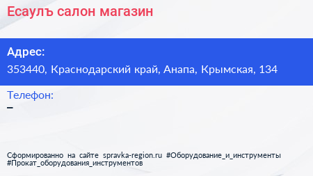 Есаулъ, салон-магазин по адресу 353440, Краснодарский край, Анапа, Крымская, 134 в дальнейшем Организация, размещена в следующих категориях:
