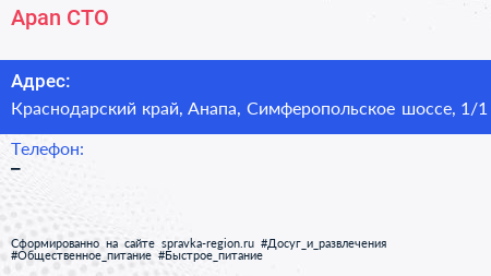 Apan, СТО по адресу Краснодарский край, Анапа, Симферопольское шоссе, 1/1 в дальнейшем Организация, размещена в следующих категориях: