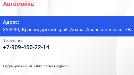 Автомойка по адресу 353440, Краснодарский край, Анапа, Анапское шоссе, 79а в дальнейшем Организация, размещена в следующих категориях: