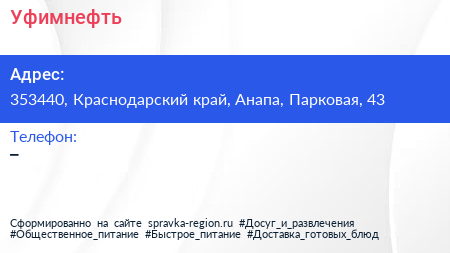 Уфимнефть по адресу 353440, Краснодарский край, Анапа, Парковая, 43 в дальнейшем Организация, размещена в следующих категориях: