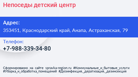 Непоседы, детский центр по адресу 353451, Краснодарский край, Анапа, Астраханская, 79 в дальнейшем Организация, размещена в следующих категориях: