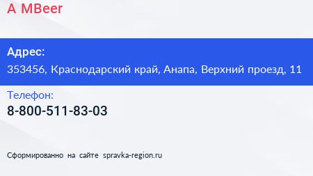 A & MBeer по адресу 353456, Краснодарский край, Анапа, Верхний проезд, 11 в дальнейшем Организация, размещена в следующих категориях: