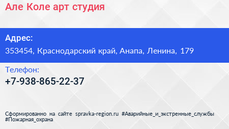 Але-Коле, арт-студия по адресу 353454, Краснодарский край, Анапа, Ленина, 179 в дальнейшем Организация, размещена в следующих категориях: