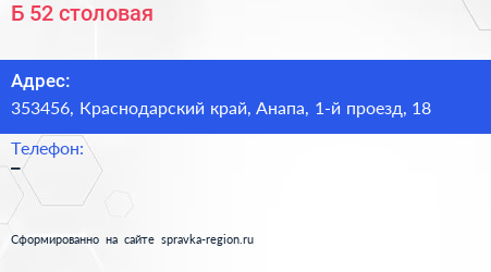 Б-52, столовая по адресу 353456, Краснодарский край, Анапа, 1-й проезд, 18 в дальнейшем Организация, размещена в следующих категориях: