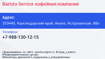 Barista Service, кофейная компания по адресу 353440, Краснодарский край, Анапа, Астраханская, 88а в дальнейшем Организация, размещена в следующих категориях: