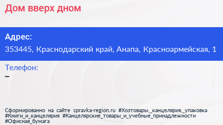 Дом вверх дном по адресу 353445, Краснодарский край, Анапа, Красноармейская, 1 в дальнейшем Организация, размещена в следующих категориях: