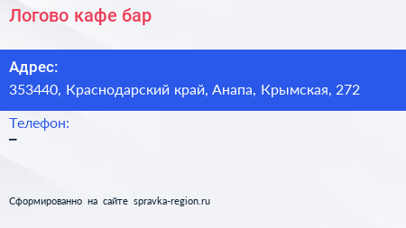Логово, кафе-бар по адресу 353440, Краснодарский край, Анапа, Крымская, 272 в дальнейшем Организация, размещена в следующих категориях: