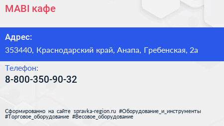 MABI, кафе по адресу 353440, Краснодарский край, Анапа, Гребенская, 2а в дальнейшем Организация, размещена в следующих категориях: