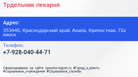 Трдельник, пекарня по адресу 353440, Краснодарский край, Анапа, Крепостная, 72а киоск в дальнейшем Организация, размещена в следующих категориях: