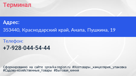 Терминал по адресу 353440, Краснодарский край, Анапа, Пушкина, 19 в дальнейшем Организация, размещена в следующих категориях: