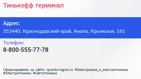 Тинькофф, терминал по адресу 353440, Краснодарский край, Анапа, Крымская, 161 в дальнейшем Организация, размещена в следующих категориях: