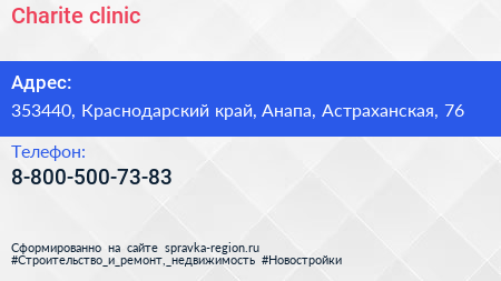 Charite clinic по адресу 353440, Краснодарский край, Анапа, Астраханская, 76 в дальнейшем Организация, размещена в следующих категориях: