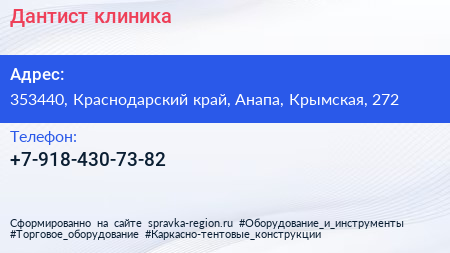 Дантист, клиника по адресу 353440, Краснодарский край, Анапа, Крымская, 272 в дальнейшем Организация, размещена в следующих категориях: