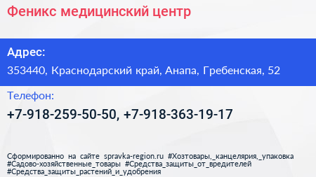 Феникс, медицинский центр по адресу 353440, Краснодарский край, Анапа, Гребенская, 52 в дальнейшем Организация, размещена в следующих категориях: