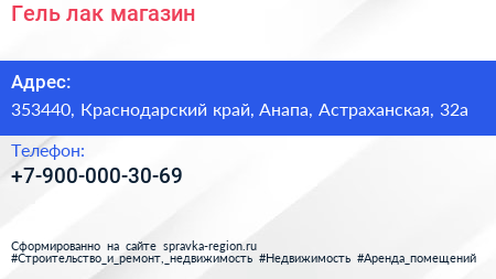 Гель-лак, магазин по адресу 353440, Краснодарский край, Анапа, Астраханская, 32а в дальнейшем Организация, размещена в следующих категориях: