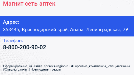Магнит, сеть аптек по адресу 353445, Краснодарский край, Анапа, Ленинградская, 79 в дальнейшем Организация, размещена в следующих категориях: