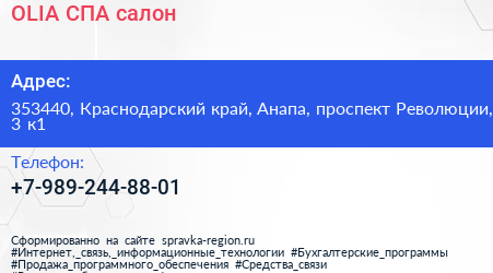 OLIA, СПА-салон по адресу 353440, Краснодарский край, Анапа, проспект Революции, 3 к1 в дальнейшем Организация, размещена в следующих категориях: