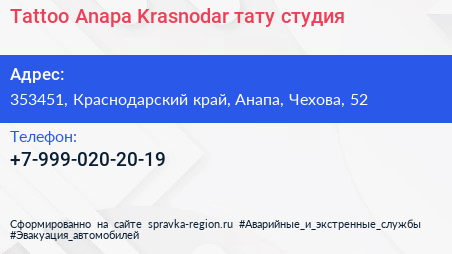Tattoo Anapa Krasnodar, тату-студия по адресу 353451, Краснодарский край, Анапа, Чехова, 52 в дальнейшем Организация, размещена в следующих категориях: