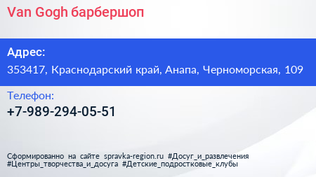 Van Gogh, барбершоп по адресу 353417, Краснодарский край, Анапа, Черноморская, 109 в дальнейшем Организация, размещена в следующих категориях: