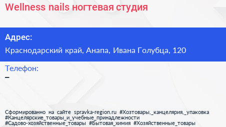 Wellness nails, ногтевая студия по адресу Краснодарский край, Анапа, Ивана Голубца, 120 в дальнейшем Организация, размещена в следующих категориях: