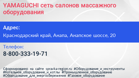 YAMAGUCHI, сеть салонов массажного оборудования по адресу Краснодарский край, Анапа, Анапское шоссе, 20 в дальнейшем Организация, размещена в следующих категориях: