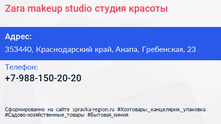 Zara makeup studio, студия красоты по адресу 353440, Краснодарский край, Анапа, Гребенская, 23 в дальнейшем Организация, размещена в следующих категориях:
