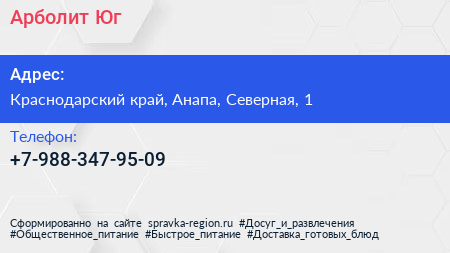 Арболит Юг по адресу Краснодарский край, Анапа, Северная, 1 в дальнейшем Организация, размещена в следующих категориях: